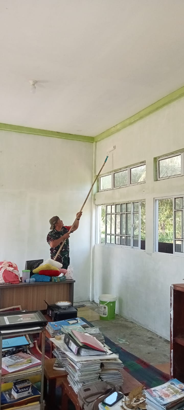Belat , 27 April 2026 — Babinsa Desa Penarah dan Degong, Serda Endra Syahputra, turun langsung membantu pengecatan ruang perpustakaan di Desa Penarah, Kecamatan Belat, Senin (27/4/2026) pagi.