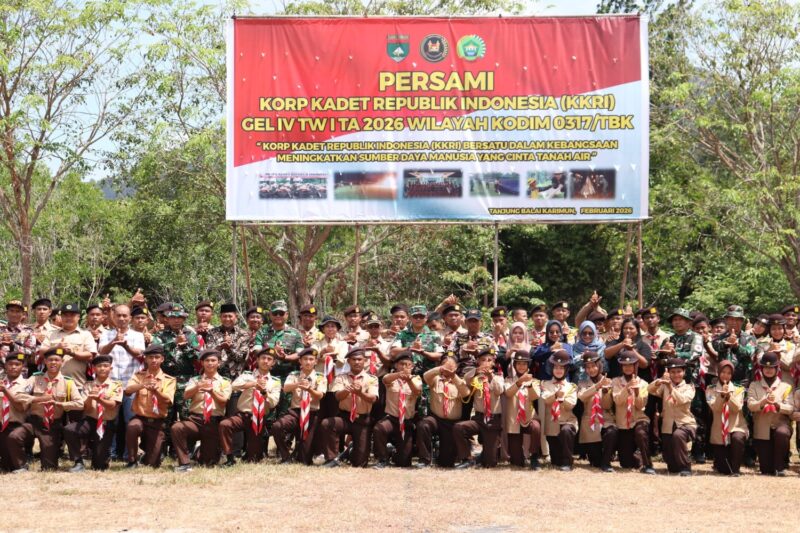 Karimun – Kasdim 0317/TBK Mayor Inf Istain Tamimi secara resmi menutup kegiatan Persami Korp Kadet Republik Indonesia (KKRI) Gelombang IV TA 2026 Wilayah Kodim 0317/TBK pada Minggu, 15 Februari 2026 pukul 10.30 WIB di Lapangan Kipan B Yonif 136/TS, Kelurahan Pasir Panjang, Kabupaten Karimun. Upacara penutupan berlangsung khidmat dan diikuti 100 peserta kadet.